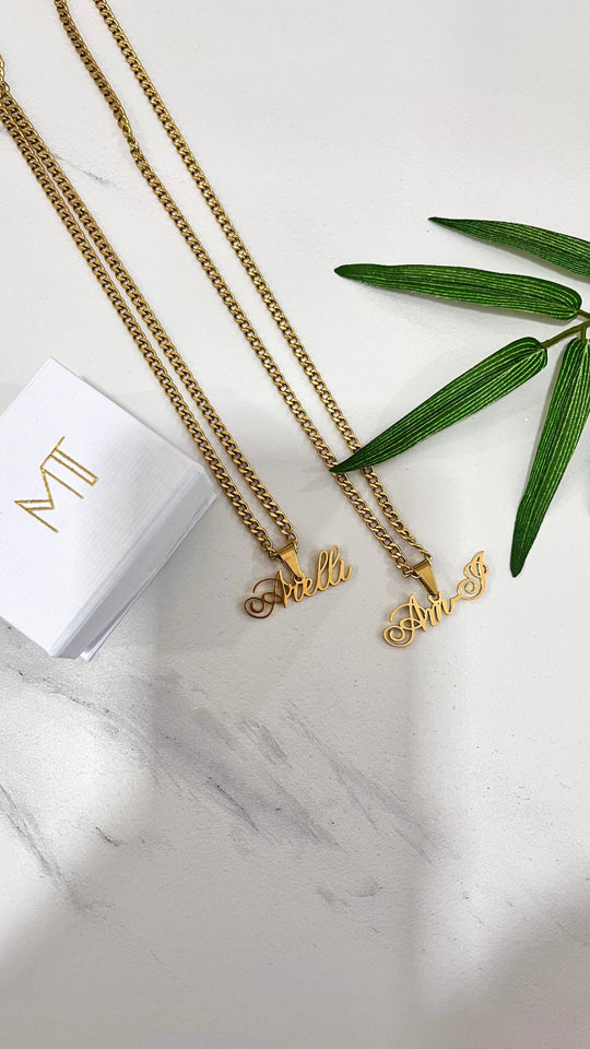 Indulge, & have your name, business logo or any wording customized beautifully; in high-quality 18K Gold Plated, Silver, or Rose Gold fine-fashion jewelry.
